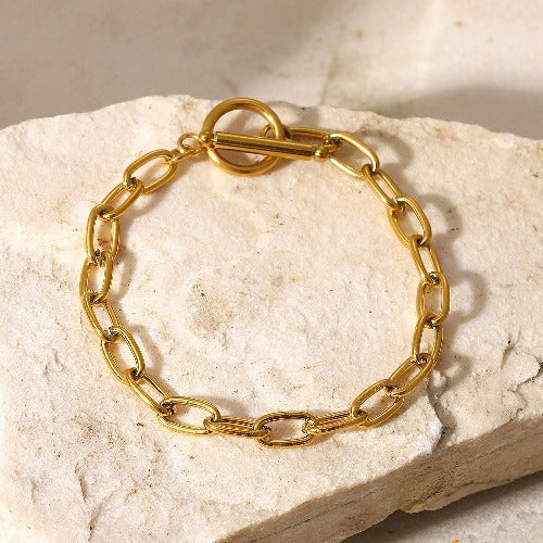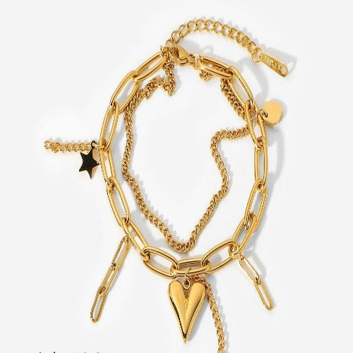 Glam up your style with our collection of versatile Gold Bracelets! With a variety of stunning designs, these bracelets are gold plated and waterproof, providing effortless elegance and durability. Perfect for any occasion, elevate your look and make a statement with these must-have accessories.